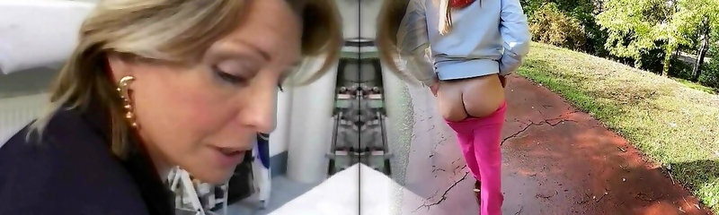 Stockinged milf finger-tickled by les before bj