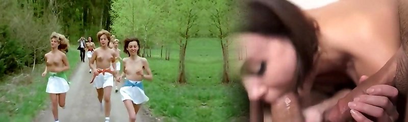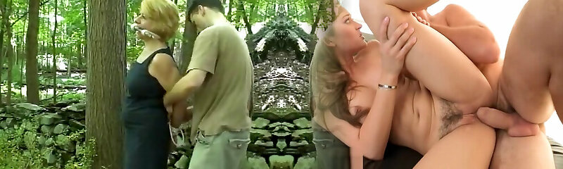 Desiree Cousteau, Joey Silvera in classic porn vignette with three-way in the forest