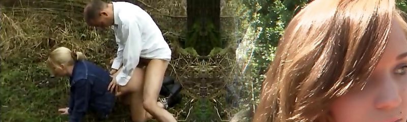 Small titted chick from Germany gets fucked outdoors by a thick weenie