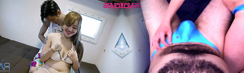 Sex with Asian buxom girl on New Year's Eve - Busty Girl Pummel on New Year's and jism on her cute funbags